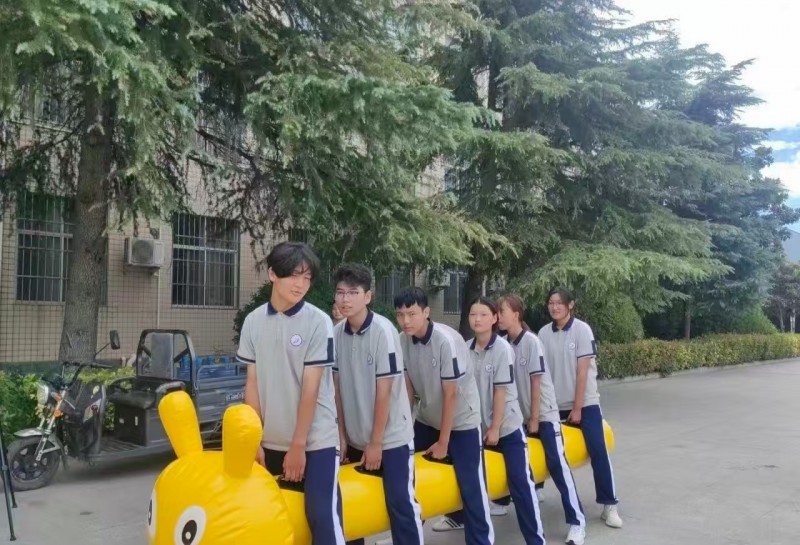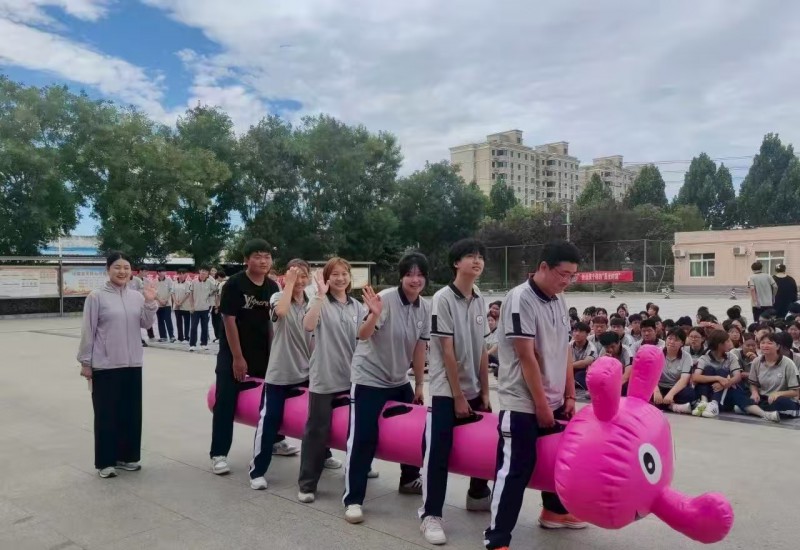 运动会设置了 “毛毛虫大作战”“摸石头过河” 等经典团队竞技项目。在 “毛毛虫大作战” 中,焦作护理学校的师生们三人一组骑乘充气道具,喊着整齐的口号 “一二、一二”,步调一致地冲向终点。参赛队伍中既有班主任与学生的组合,也有教官与班级的联队,充分体现了 “全员参与、共克难关” 的活动宗旨。而在 “摸石头过河” 环节,选手们需通过交替移动泡沫板跨越障碍,考验身体协调性与团队策略。焦作护理学校 2025 级新生王同学表示:“这些项目让我们在紧张的军训中放松身心,更深刻体会到‘众人齐心,其利断金’的道理。”